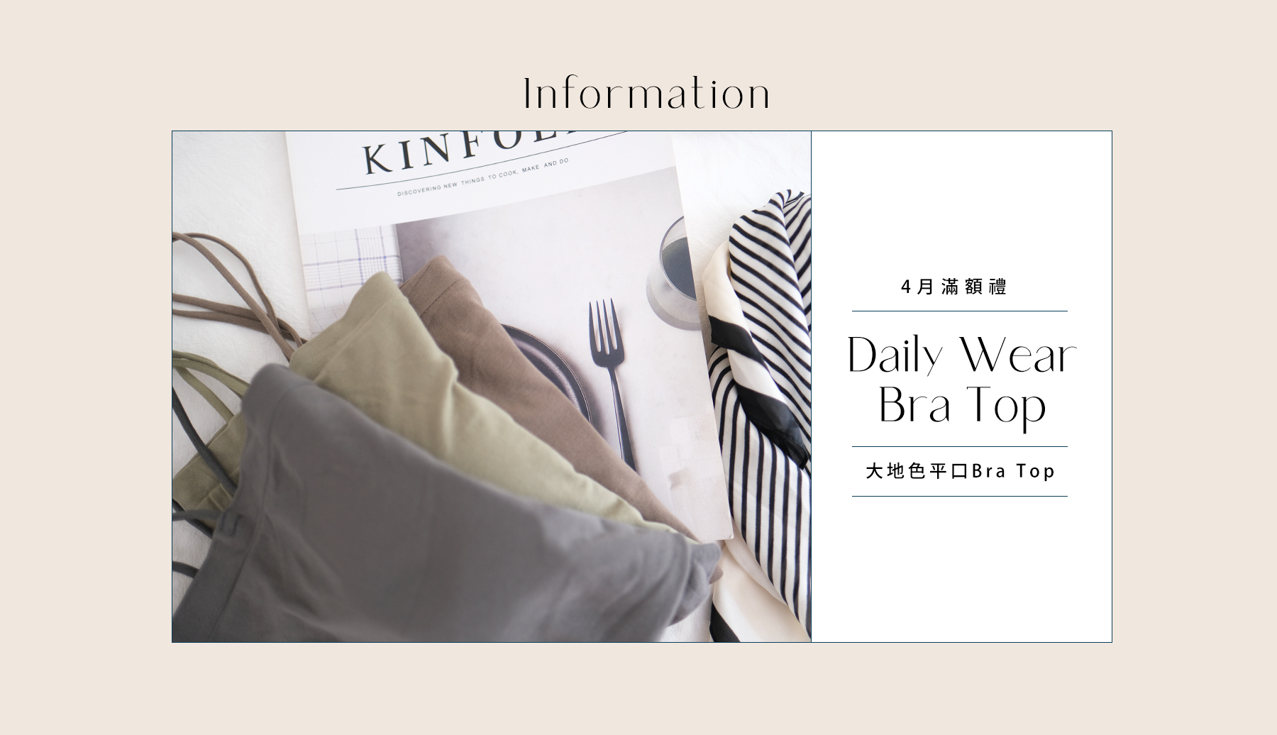 單筆滿$4600 即贈 " 大地色平口Bra Top " (兩件)