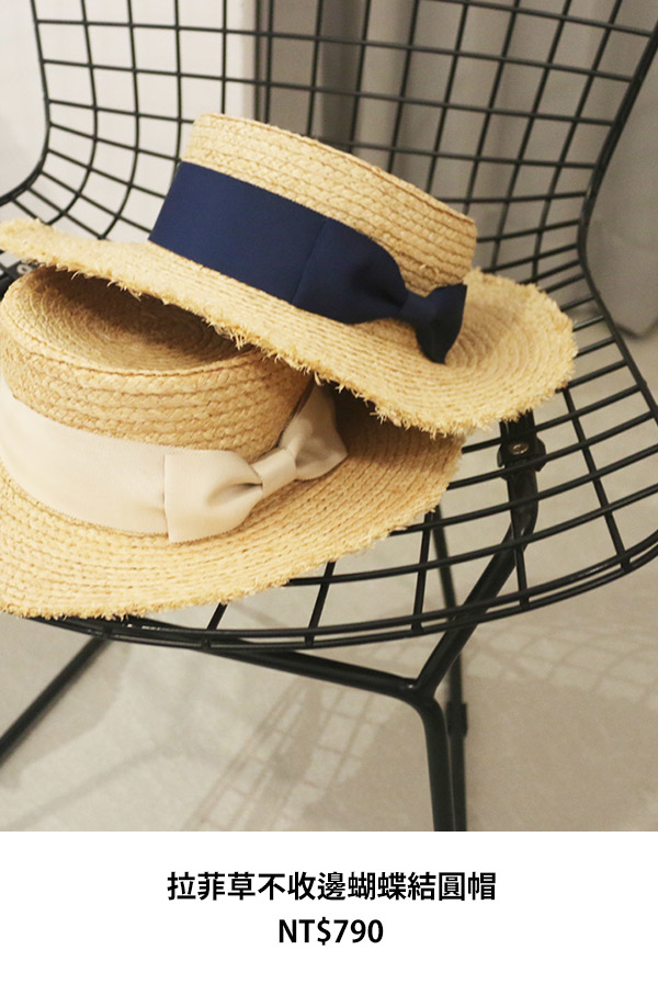 拉菲草不收邊蝴蝶結圓帽 ,可折疊草編漁夫帽