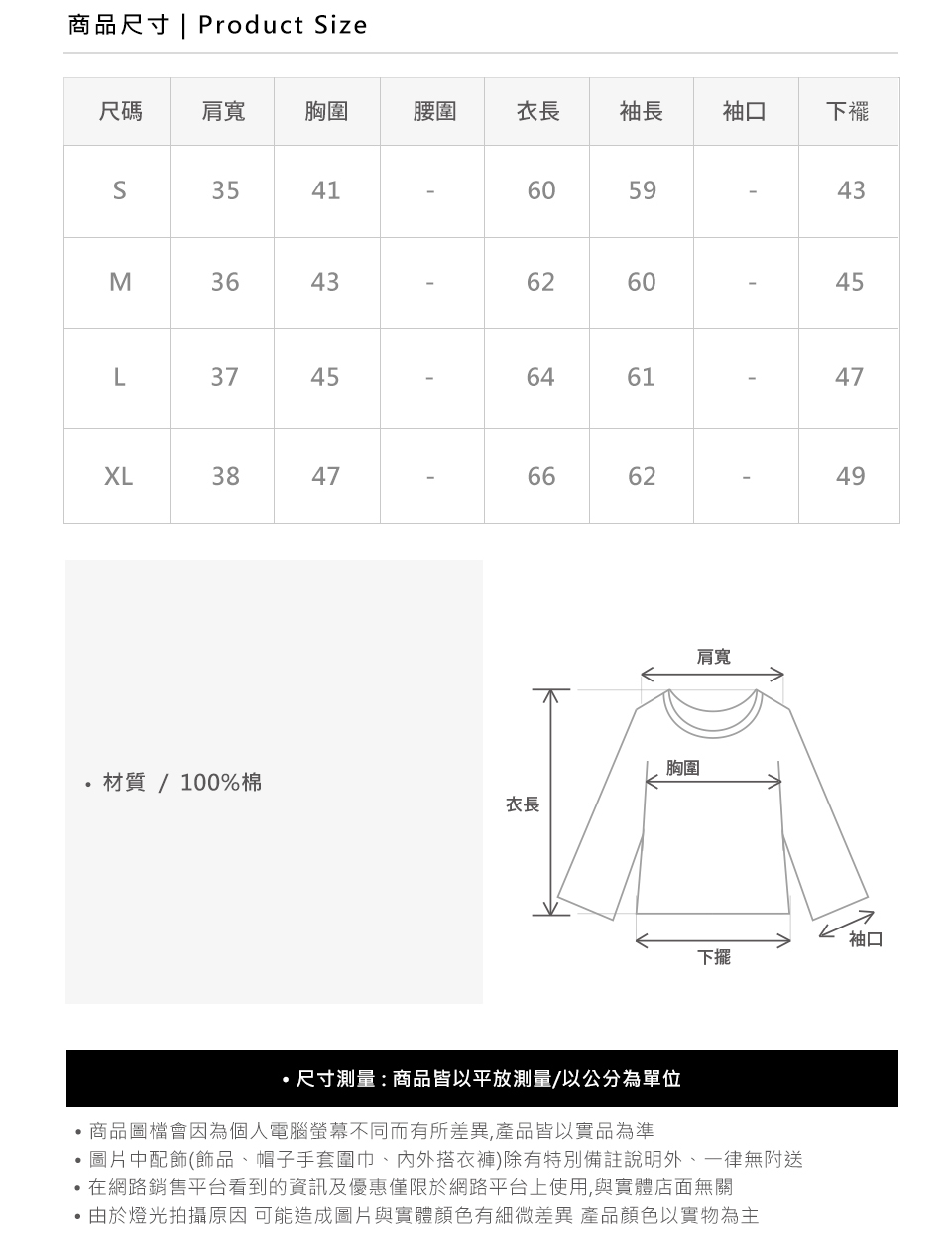 ※尺寸表為平量.單位公分CM.尺寸正負誤差2CM內為正常值