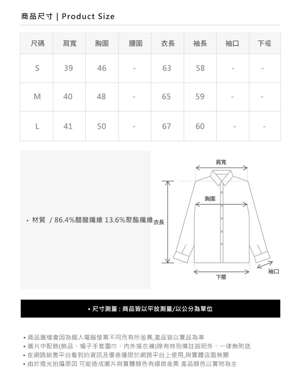 ※尺寸表為平量.單位公分CM.尺寸正負誤差2CM內為正常值